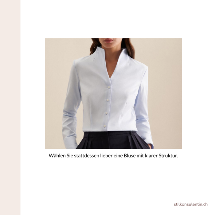 Ein gut definierter Schnitt betont die Silhouette und sorgt für eine elegante Erscheinung, während ein vages Design die Figur oft weniger vorteilhaft wirken lässt. Tops, die nicht ganz der Struktur einer Bluse oder der Schlichtheit eines T-Shirts entsprechen, können die Proportionen stören.