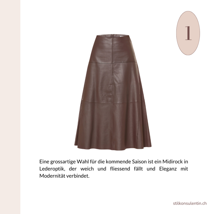 Diese Woche möchte ich den Midirock vorstellen. Er ist der Star der Saison und wird auch 2025 eine wichtige Rolle spielen. Es ist gut zu wissen, dass Midröcke in leicht unterschiedlichen Längen, Formen und Materialien erhältlich sind. Der Schlüssel liegt darin, das Modell zu finden, das der eigenen Figur am besten schmeichelt. Die ideale Länge liegt etwa eine Handbreit unterhalb des Knies. Wer sich wegen seiner Waden unsicher fühlt, dem empfehle ich einen Midirock mit einer weiten, fließenden Silhouette, die sanft über die Beine fällt.