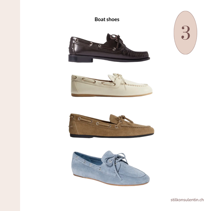 Der preppy Bootsschuh ist der wohl unerwartetste, aber gleichzeitig begehrteste Schuhtrend der Saison. Für alle, die keine Loafer mögen, bieten diese Modelle eine stilvolle Alternative mit ihrem sportlich-eleganten Charme. Besonders zeitlose Varianten finden sich in Kastanienbraunem Leder und sandfarbenem Wildleder.