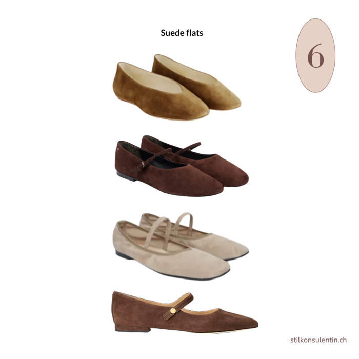 Schlicht, raffiniert und cool – Wildleder-Ballerinas sind vielleicht keine aufregende Wahl, aber sie bilden eine sehr gute Grundlage für unzählige Outfits. Betrachten Sie sie als das weisse T-Shirt der Schuhwelt – zurückhaltend, aber unendlich vielseitig. Wenn sie gut gemacht sind, werden sie zu einem Paar, auf das Sie immer wieder zurückgreifen werden; ein echter Garderobenklassiker.