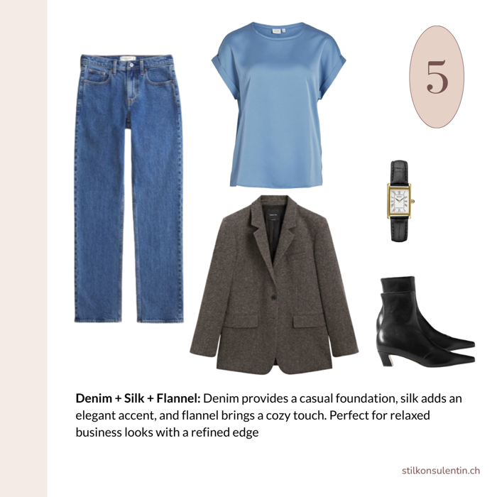 Another way to give your outfit real character: playing with fabrics. One of the most effective ways to add personality to your outfit is through the conscious mix of fabrics. As soon as you start combining different textures, your styling instantly gains depth and sophistication.