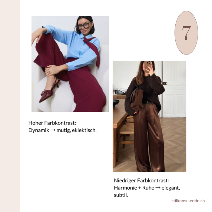 Teste bewusst neue Farbkombinationen – und beobachte, wie sich dein Look (und dein Auftreten) verändern. Farben erzählen immer eine Geschichte – du entscheidest, welche dein Look erzählt.