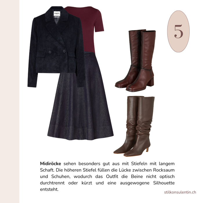Hier ist ein Styling Guide, wie Sie Stiefel passend zu verschiedenen Hosen- und Rockstilen kombinieren.